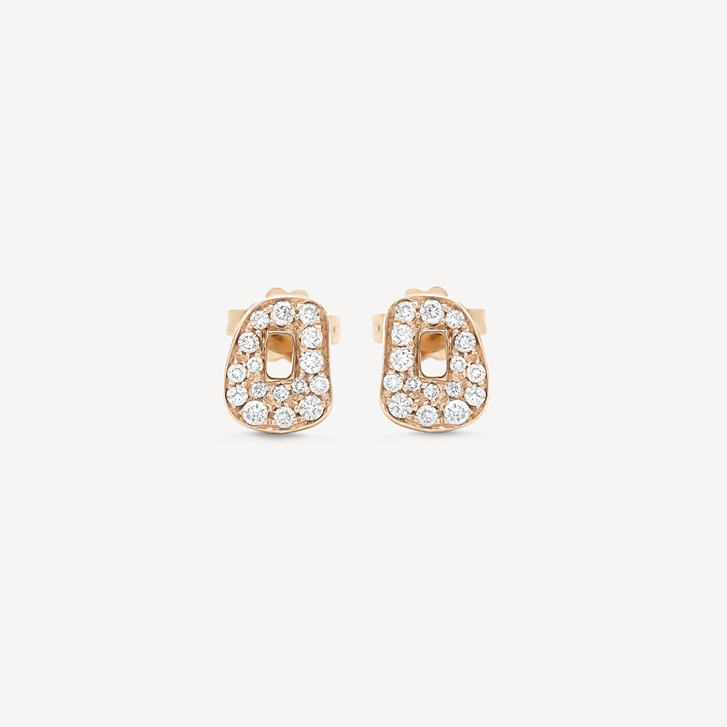 Mini Puzzle earrings in rose gold and pavé white diamonds and two pairs of colored mini puzzles