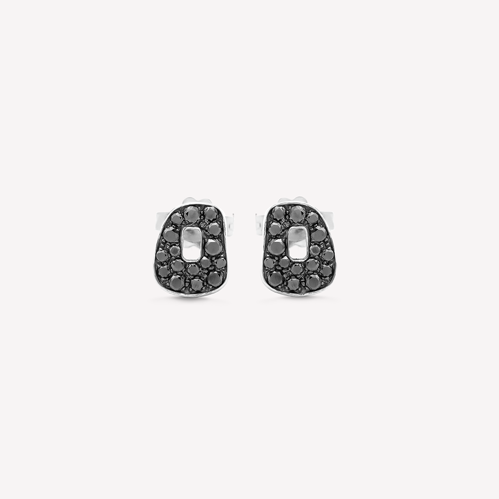Mini Puzzle stud earrings in white gold and blue sapphires pavé