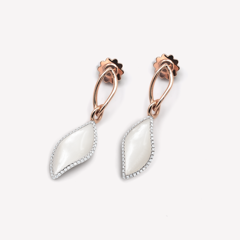 The timeless refinement of the Navette cut, reimagined by Mattioli. Fluid forms, shimmering diamonds and luminous mother-of-pearl reveal a romantic elegance, masterfully handcrafted in Italy. A beauty untouched by time, a romantic interpretation revealing an enduring sense of grace.