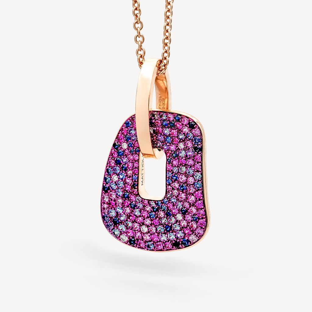 Puzzle Solo maxi pendant in rose gold, white diamonds, pink sapphires, blue sapphires – 90 cm chain included