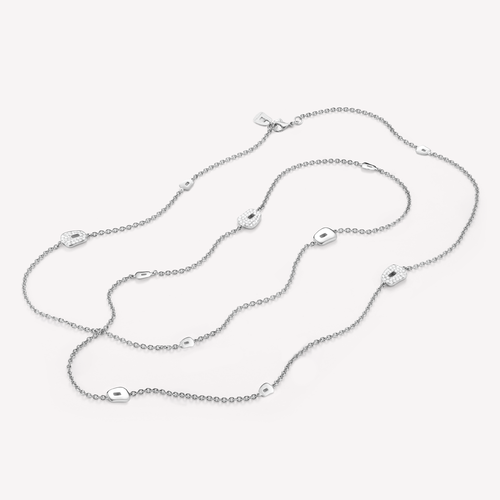 Puzzle Solo maxi pendant in white gold, white diamonds pavé – 90 cm chain included