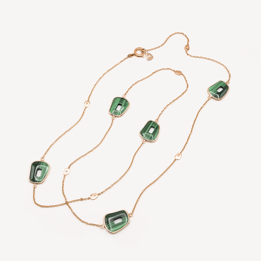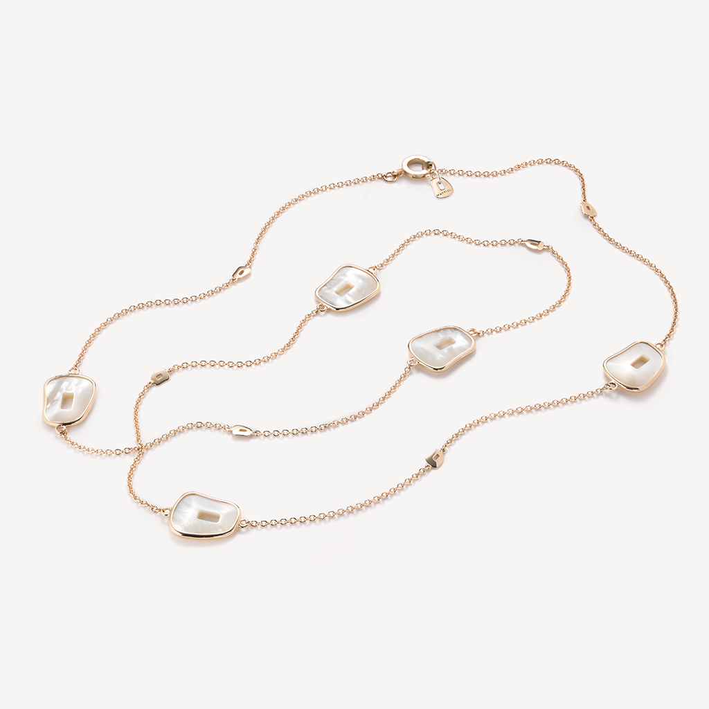 Puzzle Solo necklace in rose gold and three hand-engraved elements – 90 cm