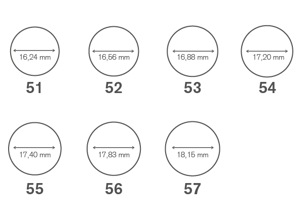 Se, ad esempio, il diametro interno dell’anello misura 16,56 mm, la taglia equivalente sarà la 52.