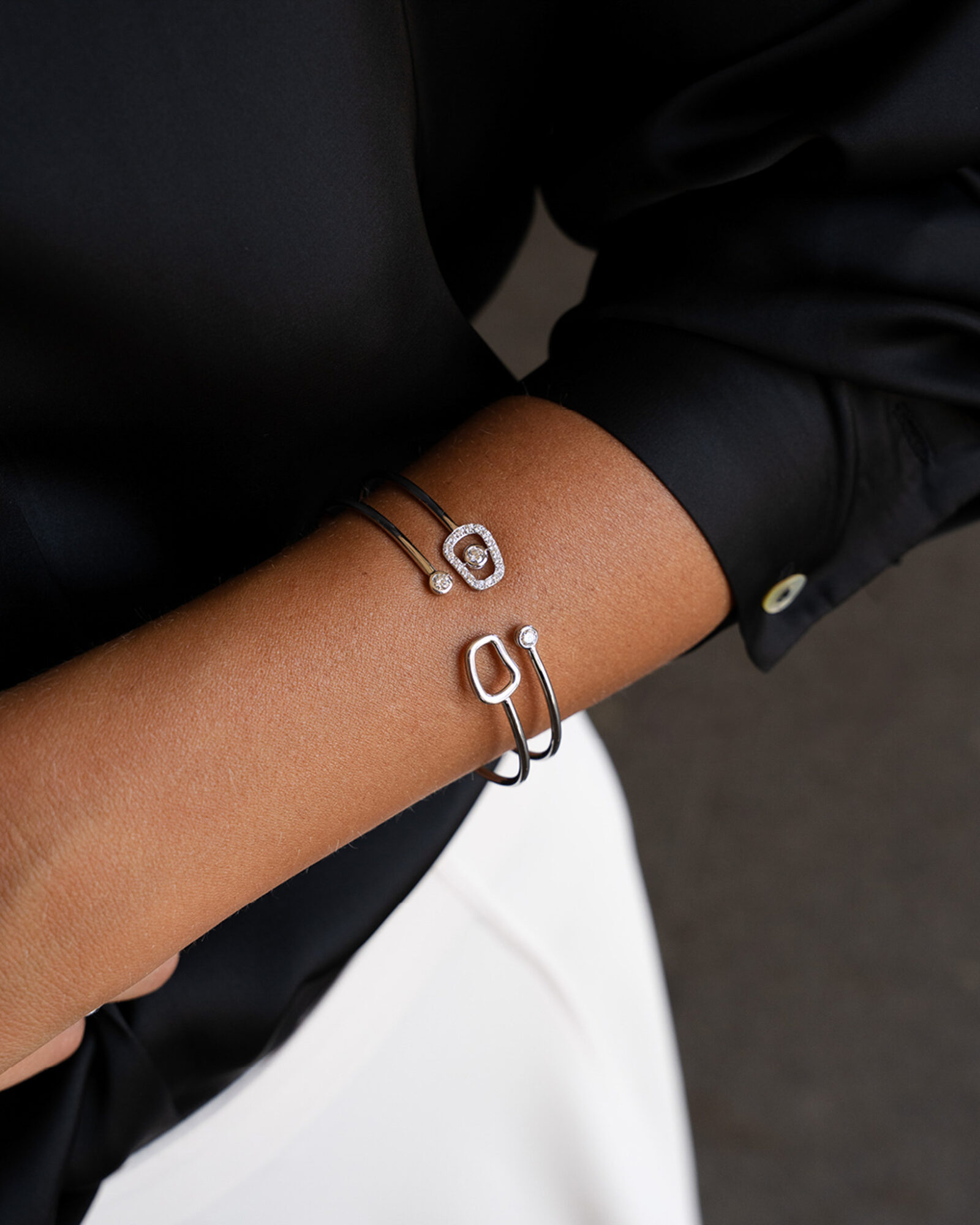 Bracciale rigido Puzzle Luce in oro bianco e diamanti bianchi